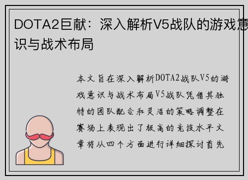 DOTA2巨献:深入解析V5战队的游戏意识与战术布局