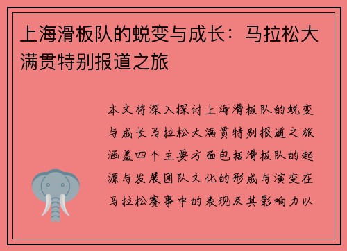 上海滑板队的蜕变与成长:马拉松大满贯特别报道之旅